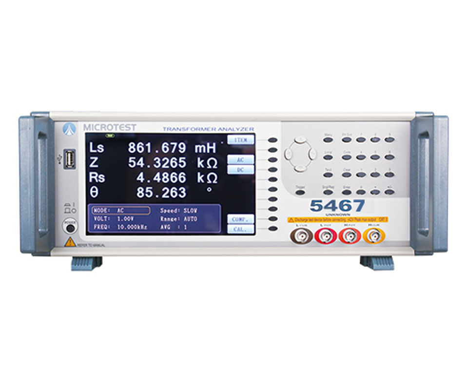 益和 5467 變壓器, 測試頻率為 10Hz-1MHz,測試點位為48 點。基本精準度 ±0.1%,搭配F5648測試治具(含100mA直流偏置電流)。內建可儲存128組測試檔案。支援RS-232、Handler、LAN、USB Host等介面。適用于各種變壓器進料、檢驗、品保等檢測部門。