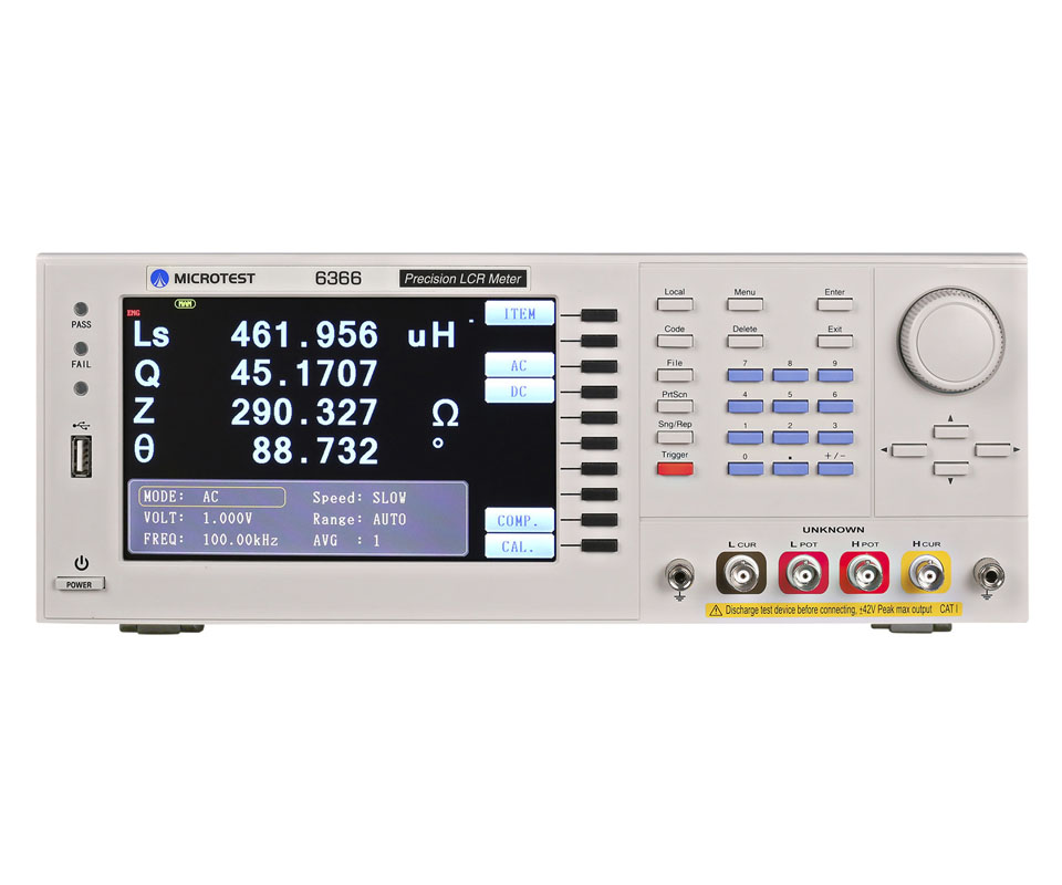 6366經濟型 LCR 電橋具備高精確度、速度,且經濟型多功能,測試頻率范圍從10Hz~500kHz。基本精確度±0.05%,螢幕畫面可以同時顯示四個參數。具多步列表功能,最多可以設定8組。低頻率6365A(0.1Hz~200kHz)可量測容量大的鋁電解電容。支援USB Host、RS-232、GPIB、Handler、LAN等介面??蛇x購電腦連線軟體進行圖形繪圖分析。適用于生產制造、品?;蜻M料檢驗或自動化檢測部門。
